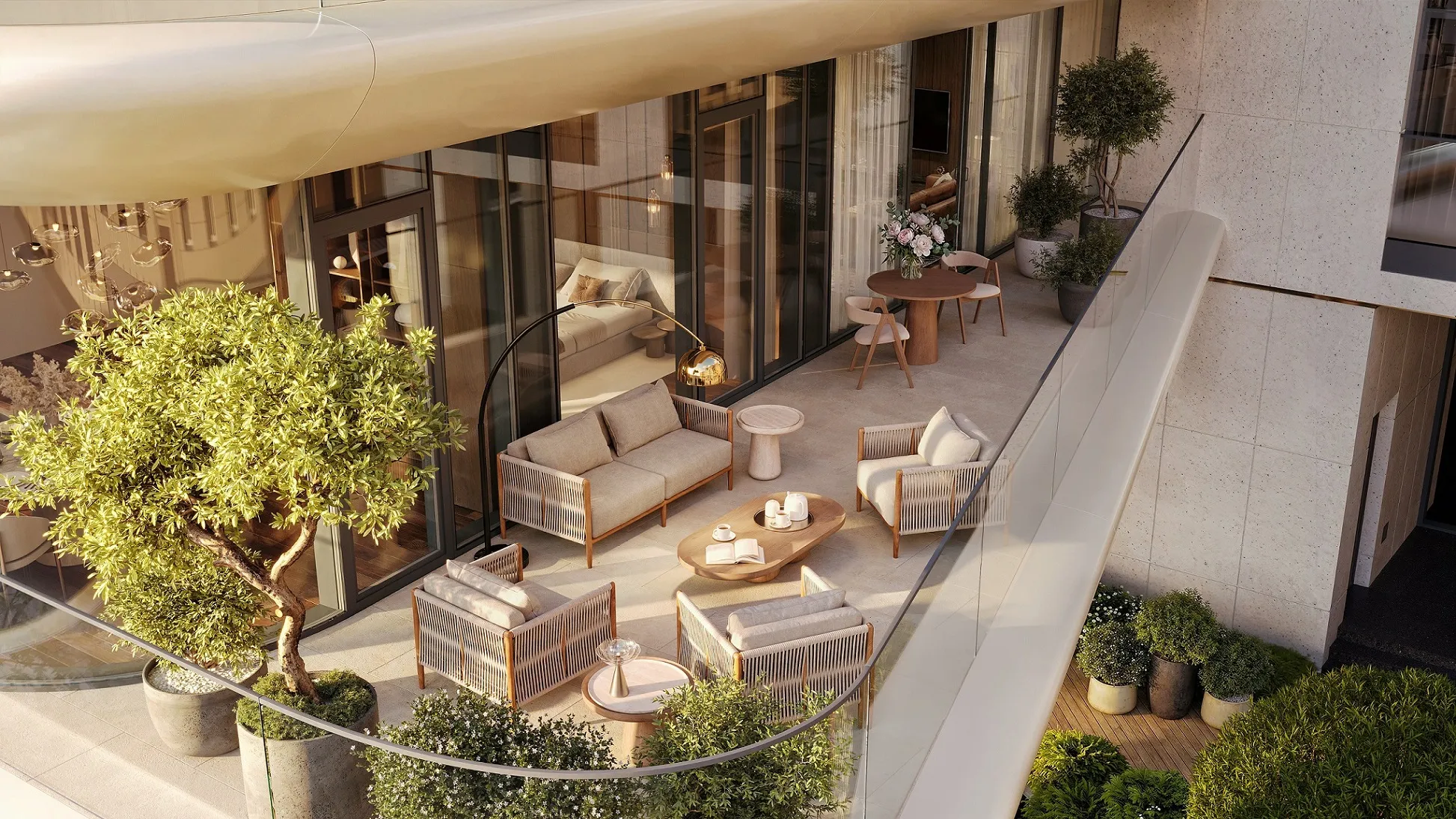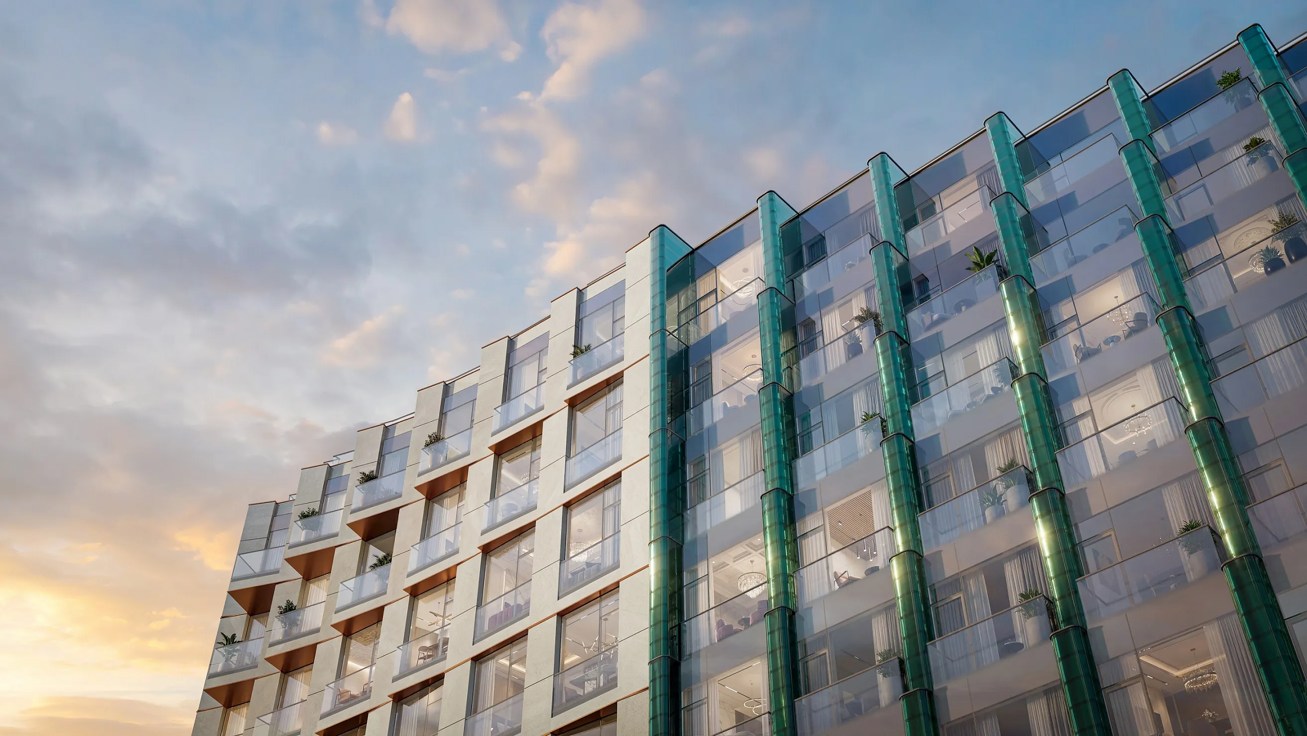 Здание с архитектурой от бюро ADM гармонично вписано в исторический облик района и при этом выглядит эффектно и современно. Каждый из фасадов — белый глянцевый с плавными консольными террасами, выступающими на 4 метра, каменный с волновой пластикой балконов и полностью стеклянный — имеет индивидуальное художественное решение.