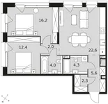 В комплексе представлены квартиры площадью от 54 до 84 кв.м — от уютных двухкомнатных до просторных семейных форматов. Высокие потолки, увеличенные оконные проёмы и французские балконы создают ощущение пространства и лёгкости. Из большинства квартир открываются виды на пруд или зелёные массивы района.