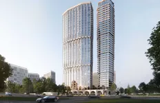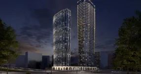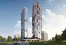 Стилобат обеспечит жильцов не только общим соседским пространством, но и удобными сервисами. Внутри расположится двухуровневое лобби с потолком 6,55 м. Интерьер будет выполнен в лаконичном стиле и дополнен панорамным остеклением.