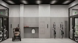 В каждом подъезде предусмотрены помещения для хранения велосипедов и колясок. На территории комплекса организованы многоуровневые и плоскостные паркинги.