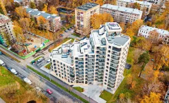 Одно главных из преимуществ комплекса – террасы площадью от 17 кв. метров до 77 кв. метров, с которых открывается роскошный вид на парк «Торфянка». Другие отличия дома – вентилируемые фасады, декорированные керамогранитом, помещения для колясок в подъезде, подземный паркинг с лифтом и т.д.