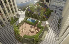 На крыше стилобата появится благоустроенный зонированный двор с местами для отдыха, детской площадкой и спортивными тренажёрами. Придомовое пространство будет закрытым и охраняемым, с атмосферой приватности и уюта.