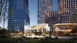 Двухэтажный стилобат соединит башни и станет местом размещения внутренней инфраструктуры. Минималистичный дизайн лобби выполнен бюро BABAYNTS. Интерьеры входных групп выполнят в стиле минимализма в светло-бежевых и песочных оттенках с применением стекла, шлифованной стали и матового акрила. В гранд-лобби установят авангардную «парящую» лестницу со встроенной подсветкой, а малые лобби с высокими потолками украсят композициями из живых растений. Корпуса строятся по монолитной технологии, фасады отделывают алюминиевыми панелями и керамогранитом. В домах помимо стандартного набора инженерии, установят системы контроля доступа с Face ID, видеонаблюдение 24/7, IP-домофонию, противопожарную автоматику и комплекс «умный дом».
