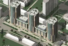 Состоит из трех 17-этажных башен, которые соединены между собой 9-этажными секциями. В доме разнообразные варианты квартир и планировок. Имеется двухуровневая подземная парковка.