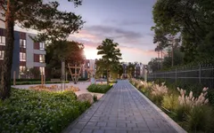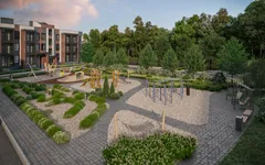 Придомовая территория площадью около 6 га будет полностью закрытой и охраняемой. В ландшафтном дизайне упор сделан на пейзажном стиле, разнообразии растительности и плавных формах. На территории появится 16 игровых зон для детей разных возрастов и 5 спортивных площадок, включая воркаут-зону, уличные тренажеры, площадку для падел-тенниса. Для взрослых предусмотрены 19 рекреационных пространств — это прогулочный бульвар вдоль леса, зеленые аллеи, зоны барбекю, тихие уголки отдыха с арт-объектами. Автовладельцы смогут пользоваться открытыми парковками, при этом для каждой квартиры предусмотрено индивидуальное машино-место. Владельцам электрокаров будут доступны зарядные станции.