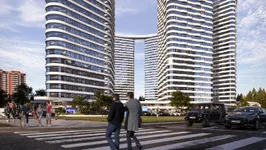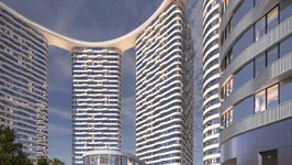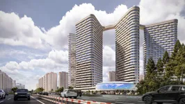 Автором проекта выступило бюро «Горпроект». Бионическая архитектура комплекса сочетает футуризм и правильную геометрию. Вертикальный ритм фасадов подчеркивает динамику форм. Композиция основана на кольцевой планировке микрорайона, характерной для конца XX века. Пять башен расположены по дуге и напоминают призмы — триангулярные и ромбовидные. На уровне 30-го этажа их соединяет скай-мост, который станет символом проекта и визуальным центром ансамбля. Форма комплекса с высоты напоминает шестеренку — акцент на технологичности здесь очевиден. В дополнение к жилым зданиям предусмотрен 25-этажный деловой центр и киберспортивная арена с панорамным экраном. Строительство зданий ведется по монолитно-кирпичной технологии. Фасады выполняются из металла, дерева и белого архитектурного бетона, а окна оснащают панорамным остеклением. Все здания обеспечат новейшим инженерным оборудованием и комплексной системой безопасности.