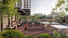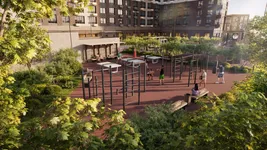 Придомовая территория будет благоустроена и полностью изолирована от автомобилей, обеспечивая безопасное и комфортное пространство. Во дворе запланированы игровые зоны для детей разных возрастов, спортивные площадки с воркаутом и силовыми тренажерами, столы для настольного тенниса и шахмат, прогулочные и беговые дорожки. Также появятся зоны спокойного отдыха с навесами, скамейками и беседками. Отдельно предусмотрена площадка для выгула собак. Все оборудование выполнят из безопасных и экологичных материалов. Озеленение включает взрослые деревья, кустарники и цветочные композиции, формирующие полноценную среду для отдыха.
