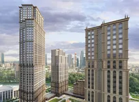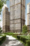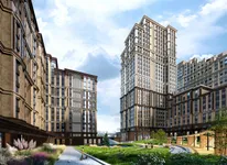 Архитектурный облик комплекса выполнен в стиле ар-деко, где строгость линий гармонично сочетается с изящными декоративными акцентами. Здания украшены выразительными арками, световыми элементами и тщательно продуманной подсветкой. Контраст материалов подчёркивает динамику фасадов и создаёт атмосферу респектабельности. Для отделки применяются архитектурный бетон и керамогранит, придающие экстерьеру благородный вид. Панорамное остекление наполняет внутренние пространства светом и формирует лёгкий силуэт высотных корпусов. Интерьеры входных групп и общественных зон созданы по проекту московской студии Nobbey. Дизайн лобби сочетает мотивы модерна и ар-деко. Корпуса возводятся по монолитной технологии, обеспечивающей прочность и долговечность. Комплекс получит современные инженерные системы, в числе которых IP-домофония, круглосуточное видеонаблюдение и доступ в комплекс по индивидуальным картам.