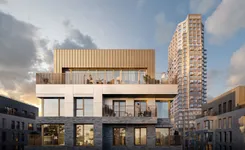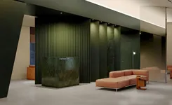 Жители «Строгино 360» смогут пользоваться гранд-лобби с авторским интерьером от бюро DPT, вдохновлённым современной скульптурой. В отделке используется тёплая древесная палитра, которая сочетается с насыщенной фактурой зелёного мрамора, создавая эффект галерейного пространства.