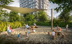Придомовая территория займёт 37 гектаров. Дворы будут закрыты от автомобилей и станут пространствами для отдыха и общения. Для машин выделены не только подземные паркинги, но и гостевые стоянки вне дворовых пределов. На территории квартала появятся спортивные и детские площадки, велодорожки, маршруты и площадки для прогулок и тренировок с собаками. В центре квартала расположится парк с игровыми зонами, песчаной зоной, настилами, гамаками и шезлонгами с атмосферой морского пляжа. Также предусмотрен камерный сад с дикими травами, плакучими ивами и зелёными кабинетами для уединения и релакса. Пешеходный бульвар длиной 3,4 км соединит магазины, кафе, рестораны и пространства для активностей.