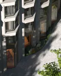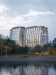 Архитектурная концепция создана бюро ATRIUM. Она подразумевает современное прочтение русского стиля и гармонично вписывает здание в существующую городскую среду. Основное внимание уделено историческому контексту, близости реки и природным особенностям рельефа. Композиция фасадов обращается к традициям московской архитектуры, узнаваемой по декоративным мотивам, напоминающим очертания кремлёвских башен. При этом фасады сохраняют строгий современный характер. Их ритм и пластика, вдохновленные треугольными орнаментами старой Москвы, формируют утончённый и лёгкий образ. Современность архитектуры подчеркивают панорамное остекление из архитектурного многофункционального стекла и эркеры с французскими балконами. Элегантность фасадов усиливают вставки из гранита и белого известняка, дополненные металлическими деталями под бронзу, придающими им выразительность и глубину.